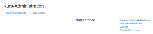 - Ggf. können Sie noch über das Brotkrumenmenu zurück zu Ihrem Kurs gehen und unter Teilnehmer/innen im Navigationsblock links prüfen, ob die Mitglieder der globalen Gruppe als Teilnehmer angezeigt werden.