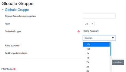 - Im Auswahlfeld für die Globale Gruppe, das Sie mit dem Pfeil öffnen, markieren Sie die gewünschte Klasse.