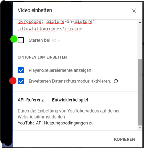 Bitte aktivieren Sie den erweiterten Datenschutzmodus (rot) und KOPIEREN sie den iFrame-Code.