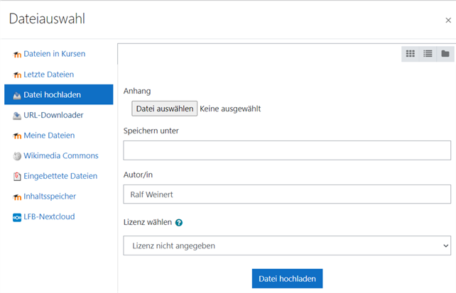 Über die Schaltfläche Datei auswählen kommen Sie zu den schon bekannten upload Möglichkeiten.