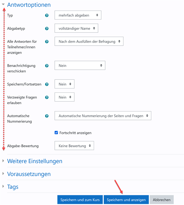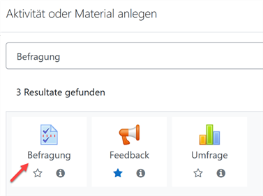 • Legen Sie die Aktivität Befragung als Trainer:in im Kurs an.