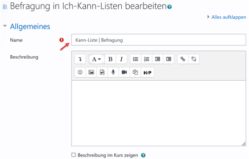 Auch die Erstellung von Kann-Listen ist möglich, mit der Schüler:innen ihren Lernstand einschätzen und der Lehrkraft rückmelden können.