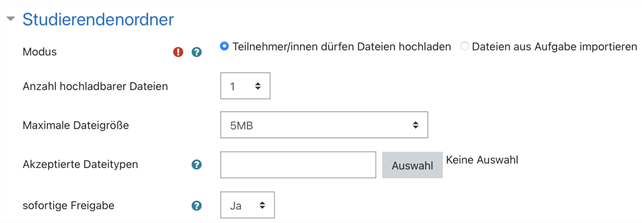 Wenn Sie erst noch selbst auf die Abgaben schauen möchten, bevor sie für alle Lernenden zur Verfügung stehen, können Sie im Punkt sofortige Freigabe auf nein umstellen und dann die eingereichten Dateien nach und nach für alle freigeben.
