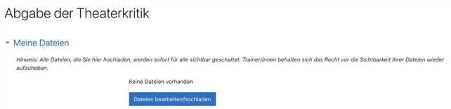 Schüler:innen klicken auf den Studierendenordner und können hier über die Schaltfläche Dateien bearbeiten/hochladen eigene Dateien abgeben.