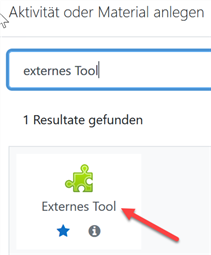 Wählen Sie nun die Aktivität Externes Tool aus.