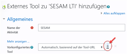Mit den folgenden Einstellungen lässt sich die Plattform SESAM per "LTI-Schnittstelle" so in eine Moodleplattform integrieren, dass die enthaltenen digitalen Unterrichtsmedien direkt als Moodle-Aktivität eingebunden werden können.