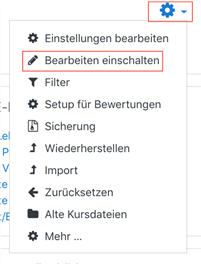 Auf den gewünschten Kurs klicken, um in den Kursraum zu gelangen, dort Bearbeiten einschalten