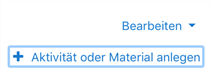 Um einen oder mehrere digiscreens in den Kursraum zu integrieren, klicken Sie im gewünschten Bereich (Thema, Kachel, etc.) unten auf + Material oder Aktivität anlegen und wählen in der Aktivitätenliste digiscreen aus.