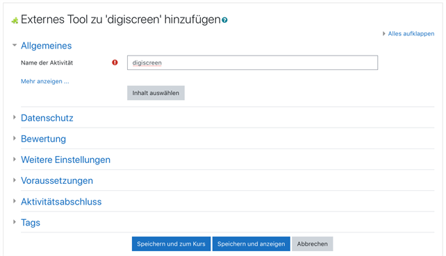 2. Erstellung eines digiscreens im Moodle-Kurs