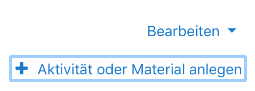 Um eine Datei, z.B. ein Textdokument, in einem Kursraum zu erstellen, klicken Sie im gewünschten Thema unten auf +Material oder Aktivität anlegen.