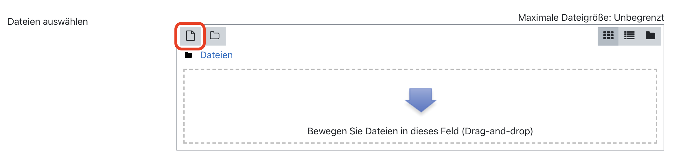 Sie können stattdessen auch auf das Datei-Symbol im Bereich Dateien auswählen klicken.
