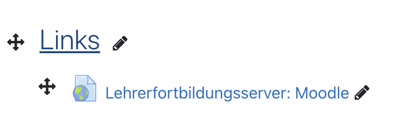 Klicken Sie diesen Bereich an, halten Sie die Maustaste gedrückt, ziehen Sie den Link an die gewünschte Stelle in Ihren Moodlekurs und lassen Sie ihn dort los.