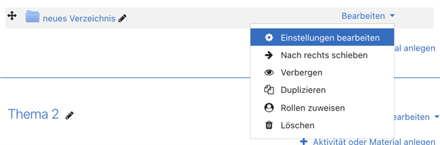 Um ein Verzeichnis zu bearbeiten, klicken Sie entweder neben der Aktivität auf Bearbeiten und dann auf Einstellungen bearbeiten