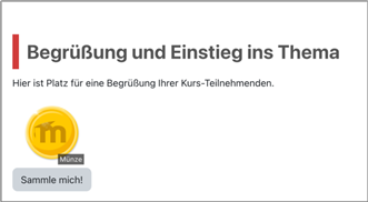 In der Rolle des Trainers ist die Münze nun sichtbar, für die Teilnehmenden ist sie unsichtbar. Das Textfeld mit der Münze erscheint erst, wenn die hinterlegte Voraussetzung erfüllt ist.