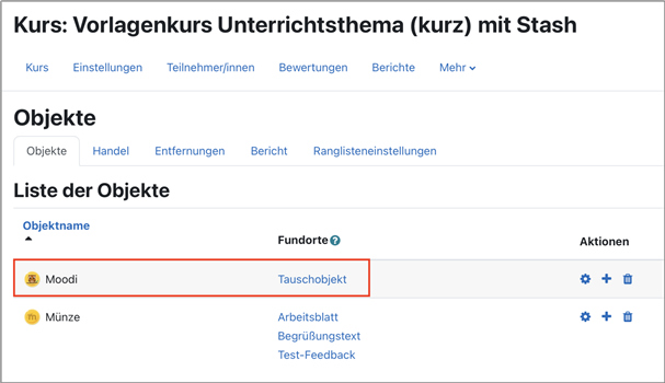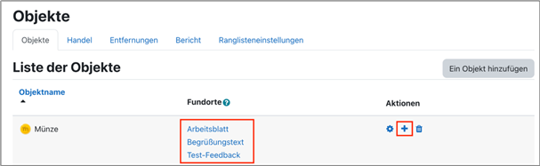 Damit Sie Münzen an unterschiedlichen Orten im Kurs verstecken können, benötigen Sie jeweils einen weiteren Fundort. Diesen können Sie auch nachträglich über das Plus-Symbol anlegen.