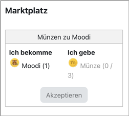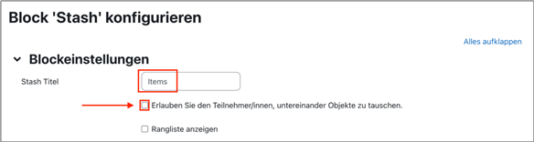 Falls Sie nicht möchten, dass die Teilnehmenden die Münzen auch untereinander tauschen können, entfernen Sie den entsprechenden Haken. Dann verschwinden im Block die Optionen Handelszentrum und Angebote.