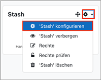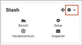 Über das Zahnradsymbol oben rechts und die Option Stash konfigurieren können Sie die Einstellungen anpassen. Hier können Sie den Titel des Blockes ändern, z.B. auf „Rucksack“, „Items“ oder „Schatztruhe“.