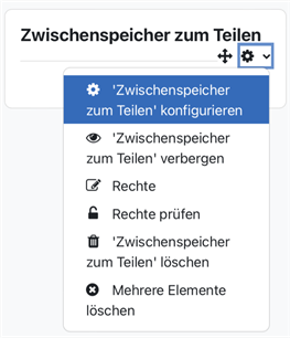 (Diese Anleitung zeigt das Einstellen des Blockes „Zwischenspeicher zum Teilen“ (früher „Sharing Cart“) in allen Kursräumen.)