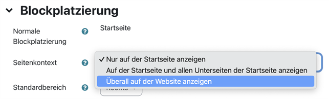 Wenn Sie den Nutzerinnen und Nutzern Ihrer Moodle-Plattform einen Block in allen Kursen zur Verfügung stellen möchten, können Sie wie folgt vorgehen.