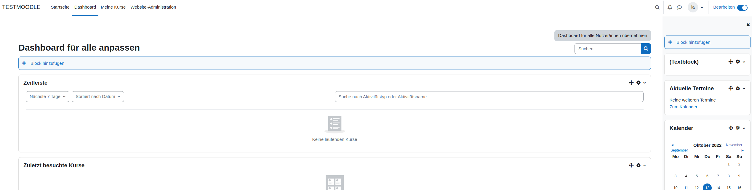 Wählen Sie, als admin angemeldet, Website-Administration – Darstellung – Dashboard für alle anpassen.