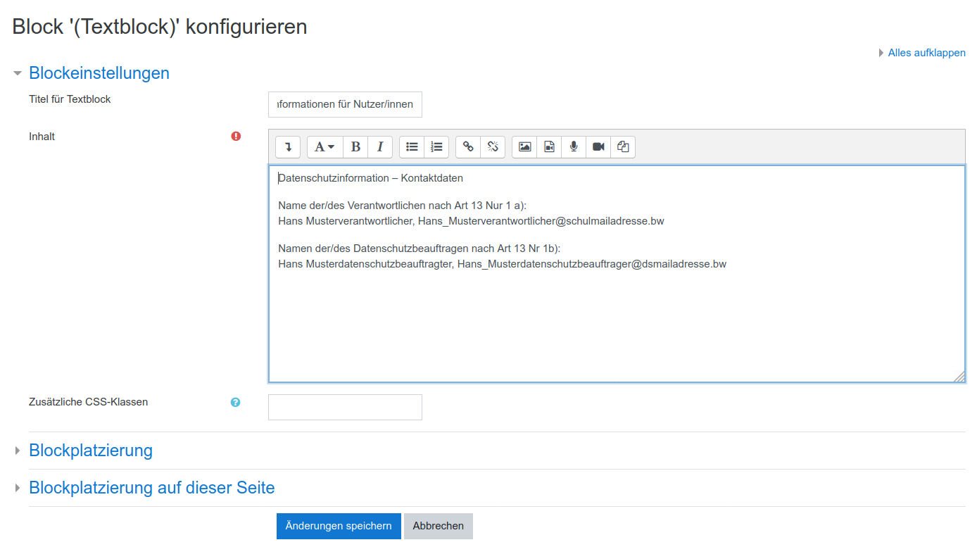 Geben Sie dem Textblock einen Titel > Informationen für Nutzer/innen