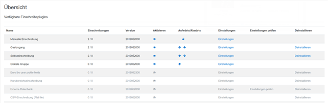 - Gehen Sie, als Administrator angemeldet, zu Website-Administration – Registerblatt Plugins – Einschreibung – Übersicht
