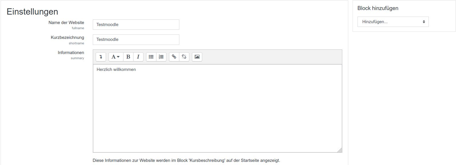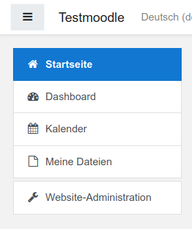 - Während der Ersteinrichtung Ihres Moodle wurde hier der Name der Website sowie die Kurzbezeichnung des Moodle festgelegt.