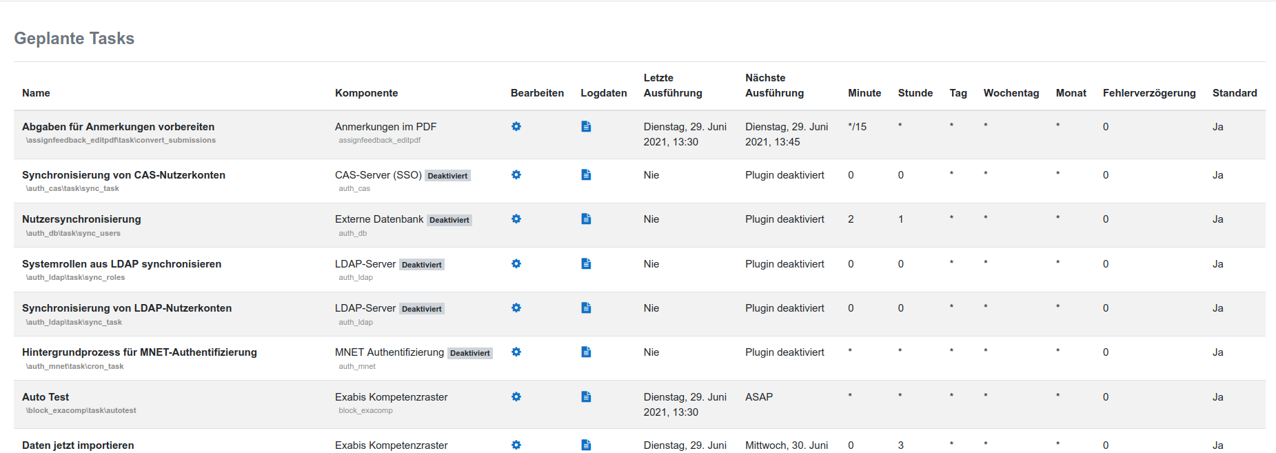 • Gehen Sie als Administator/in angemeldet zu Website-Administration - Server - Tasks - Geplante Tasks.