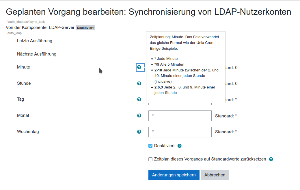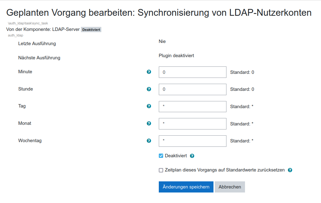 HINWEIS: sinnvoll ist die einmalige Ausführung dieses Vorgangs in der Nacht, so dass neue Schüler:innen die im LDAP System hinzugefügt wurden am nächsten Tag auch in Moodle vorhanden sind.