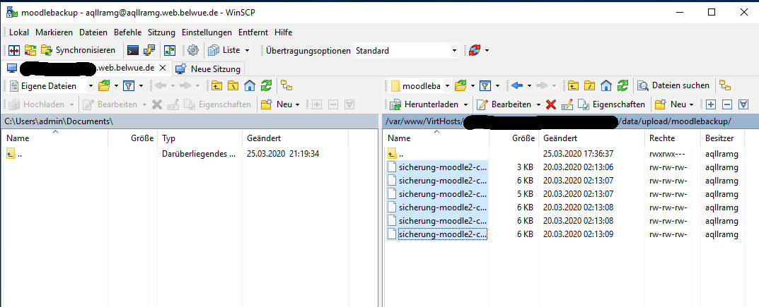 Schulen, die schon länger ein Moodle bei Belwue betreiben und einen SCP Zugang haben, können diese Kurssicherungen mit der folgenden Anleitung unter Punkt 2.1 oder wie unter 2.2 beschrieben zusätzlich auf einen lokalen Rechner sichern.