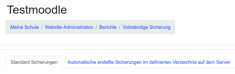 - Gehen Sie als Administrator/in angemeldet zu Website-Administration – Berichte – Vollständige Sicherung