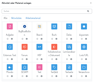 - Wenn Ihre Nutzer:innen mit Trainerrechten den Bearbeiten-Modus in einem Kursraum aktivieren, können Sie Aktivitäten und Blöcke hinzufügen.
