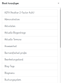 - Sie können die Liste der wählbaren Aktivitäten und Blöcke unter Website-Administration – Plugins – Aktivitäten – Übersicht und Website-Administration – Plugins – Blöcke – Übersicht anpassen. Durch Klick auf das „Auge-Symbol“ können Sie eine Aktivität bzw. einen Block aktivieren oder deaktiveren. Es empfiehlt sich, alle Aktivitäten und Blöcke zu deaktivieren, die von Ihren Kolleg:innen nicht genutzt werden bzw. nicht benötigt werden. So bleiben die beiden Listen übersichtlich.