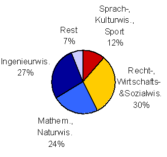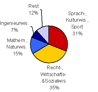 Abb. 1: Verteilung der StudienanfängerInnen an deutschen Hochschulen 2001/2002. Daten entnommen aus: GEW Gender-Report 2003 |