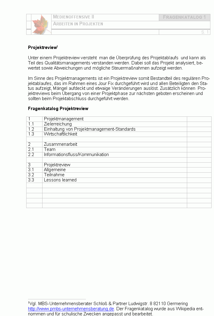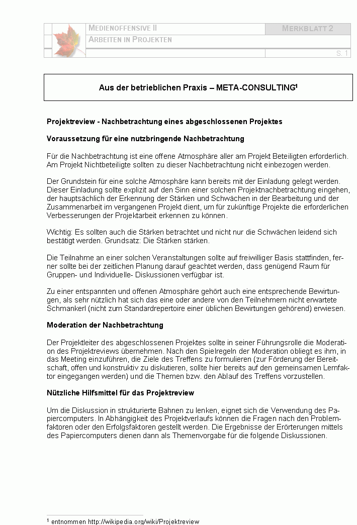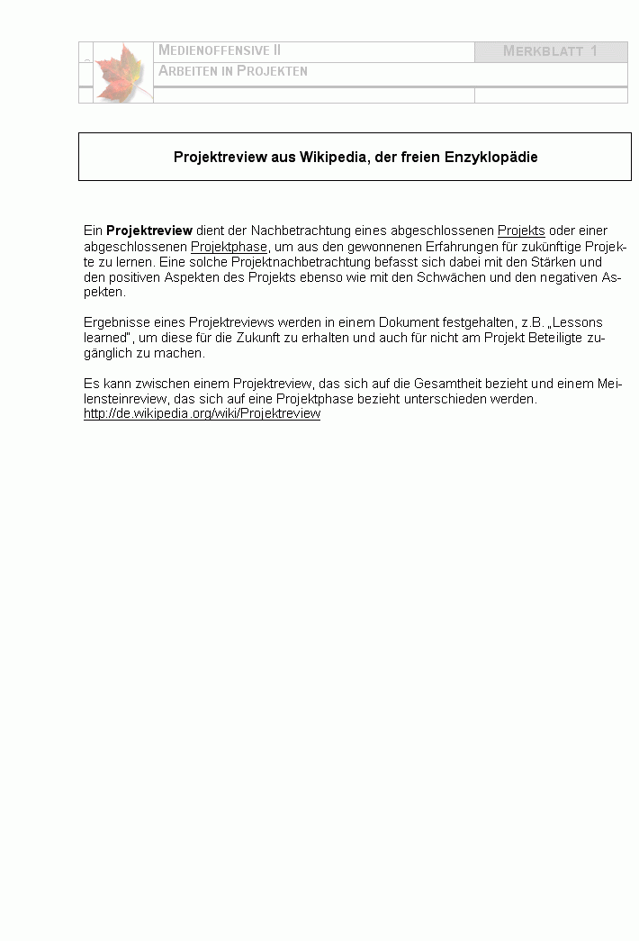 Zur Reflexion eines Projektes finden Sie hier Merkblätter und Fragenkataloge,