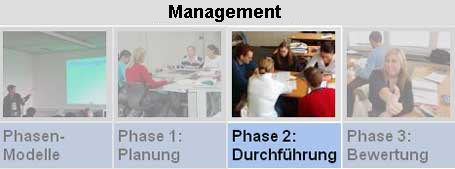 Mit dem Beginn der Projekt-Durchführung stehen gemeinsames Lernen und Handeln der Teams im Vordergrund. Indem die Schülerinnen und Schüler ihre Arbeit ab jetzt weitgehend selbst organisieren, zeigen Sie ihre soziale bzw. ihre Projekt-Kompetenz.