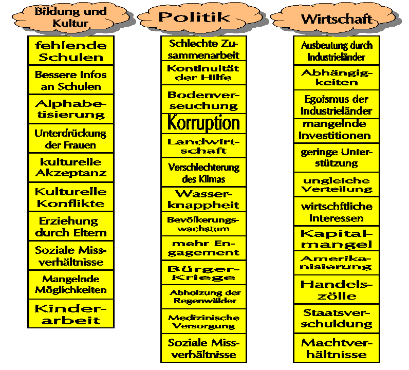 | Wenn Sie an Dritte Welt und Unterentwicklung denken, welche Probleme sehen Sie und welche Gefahren und Risiken werden auf uns zukommen? |