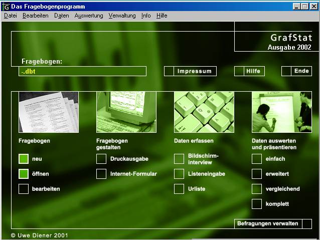 GrafStat zeigt nun das Formular zum Erfassen der Fragen, das in verschiedene Fragebogenbereiche unterteilt ist.
