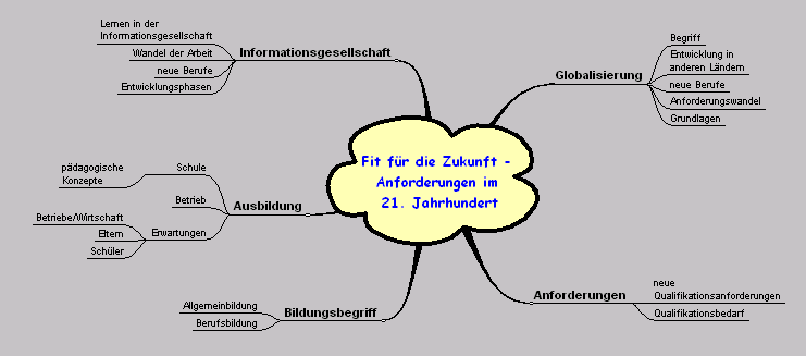 | Mindmap zur Themenfindung für den Theorieteil als Ausgangsbasis für das Gesamtprojekt | Diese Mindmap vergrößern |