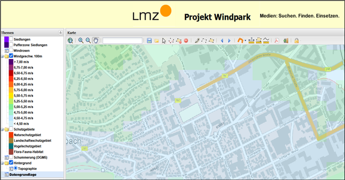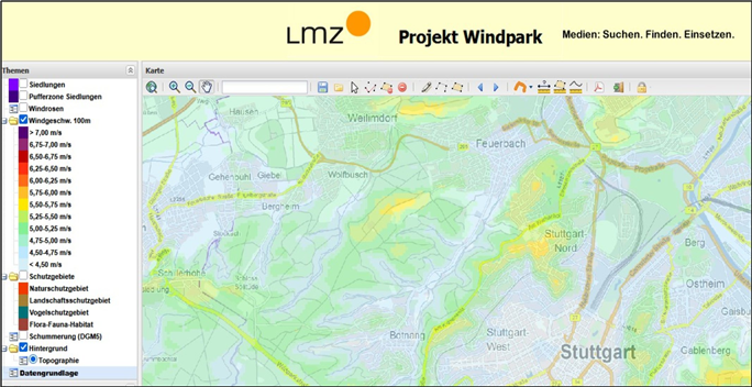 Beispiel: LMZ Karte Stuttgart „Windgeschwindigkeit“