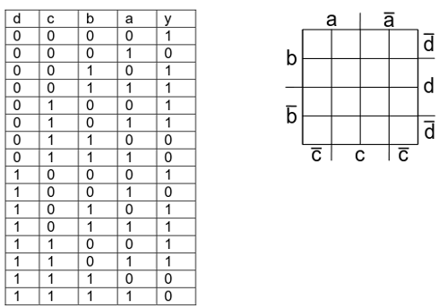a) Stelle die vollständige Wahrheitstabelle (Eingänge d, c, b, a und Ausgang y) auf.