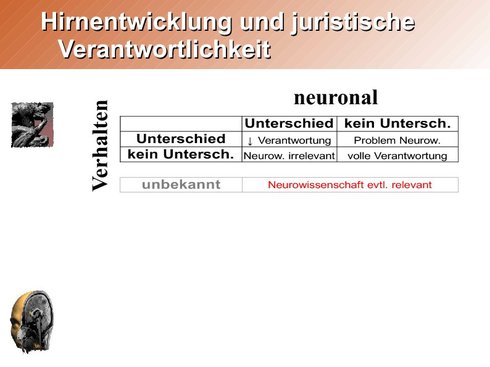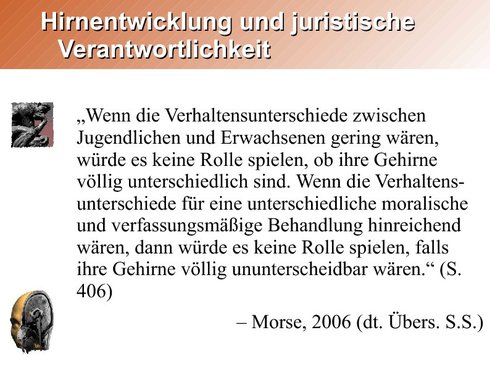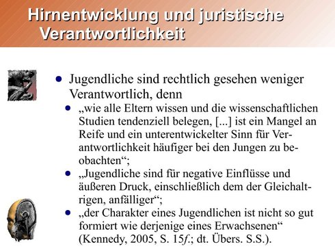 - Hinweise aus der Hirnforschung, das Präfrontalhirn von Jugendlichen sei noch nicht vollständig entwickelt.