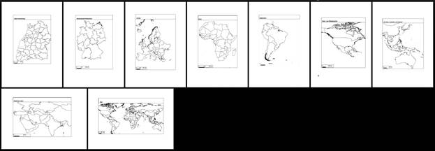 Zeichenvorlagen zur graphischen Erstellung thematischer Karten mit Stiften; Landkreise von Baden-Württemberg, Deutsche Bundesländer, Staaten Europas, Staaten in den anderen Kontinenten und Staaten der Welt.