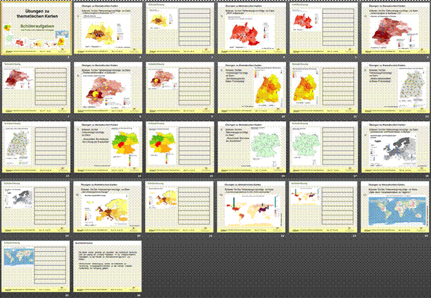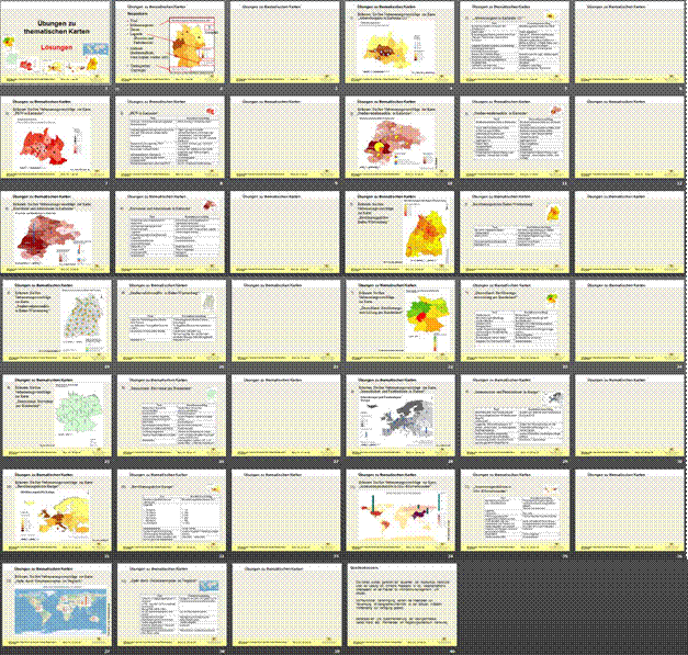 Lösungen zu den Schüler-Übungen, die zusammengestellt sind im Dokument Thematische Karte HS Übungen Ma.ppt ; von der Lehrkraft editierbare WORD-Version