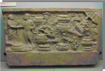Auf diesem Marmor-Sarg sieht man links ein Weinhändler-Ehepaar,
