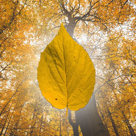 Bildquelle: Collage aus Herbstwald von qimono = Arek Socha [CC0], via pixabay, und Herbstblatt von pexels [CC0], via pixabay