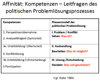 - politisch-moralische Urteilsbildung (Werturteil), “um eine eigene verallgemeinerungsfähige politische Identität zu finden, zu begründen und zu reflektieren”