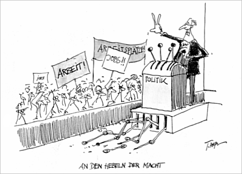 (C) Karikatur: Thomas Plassmann; "An den Hebeln der Macht"; in: Frankfurter Rundschau 19.03.2005