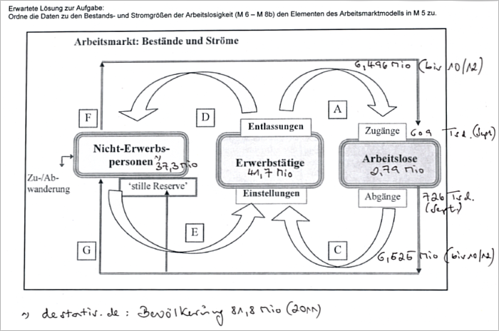 - Analysieren Sie mit Hilfe der Daten von M 6 die Bestands- und Stromgrößen der Arbeitslosigkeit.