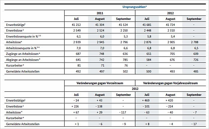 M 6 Bestandsgrößen und Stromgrößen der Arbeitslosigkeit (Juli – September 2012)